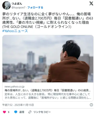 【社会】俺の居場所がない、毎日「図書館通い」の63歳男性、妻の冷たい視線に耐えられなくなった理由