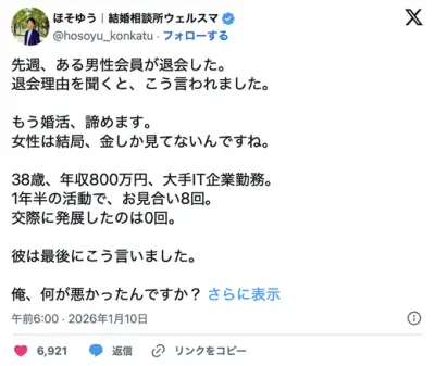 【悲報】非モテ婚活男性(年収800万)「婚活、諦めます」→結果WWWWWWWWWWWWWWW