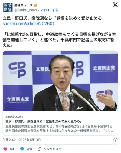 【衆院解散】立憲民主党「なぜ今なのか。国民生活や経済を置き去りにしている」