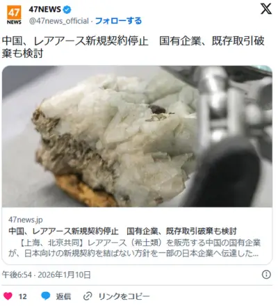 中国、日本企業とのレアアース新規契約を停止。既存契約も破棄に向けて動き出す