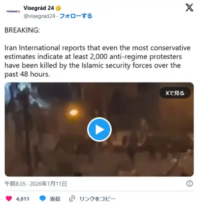 【悲報】イラン政府、ついに開き直ってデモ隊虐殺開始!少なくとも2000人以上死亡か