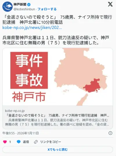 75歳男「これからトラブルの相手を殺しに行きます。それではよろしく~。今から突撃!」