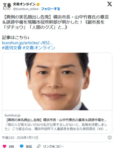 【異例の実名顔出し告発】横浜市長・山中竹春氏の暴言&誹謗中傷を現職市役所幹部が明かした! 副市長を「ダチョウ」「人間のクズ」と…
