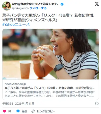 菓子パン等で大腸がん「リスク」45%増? 若者に急増、米研究が警告