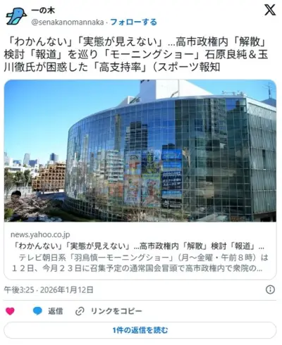 石原良純&玉川徹氏が高市政権の「高支持率」に困惑 「わかんない」「実態が見えない」