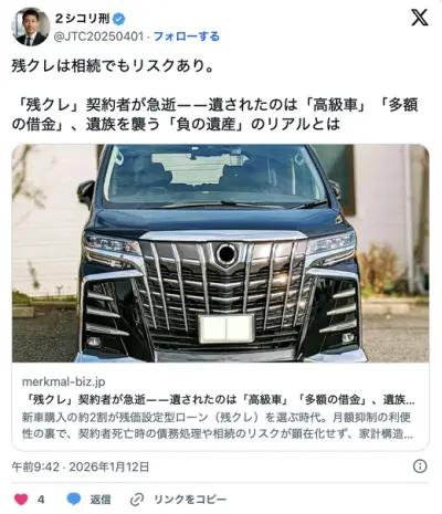 「残クレ」契約者が急逝――遺されたのは「高級車」「多額の借金」、遺族を襲う「負の遺産」のリアルとは