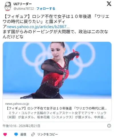 【フィギュア】ロシア不在で女子は10年後退 「ワリエワの時代に戻りたい」と露メディア
