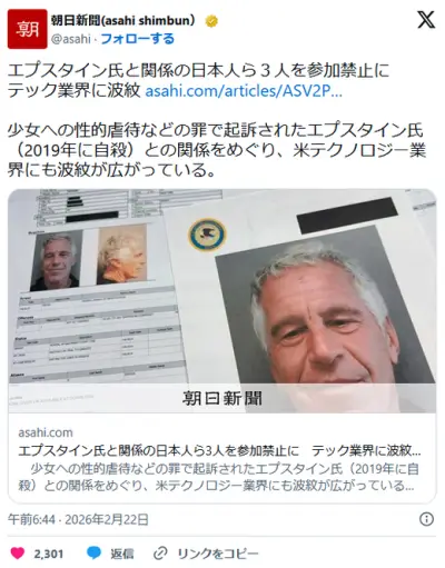 エプスタイン氏と関係の日本人ら3人を参加禁止に テック業界に波紋