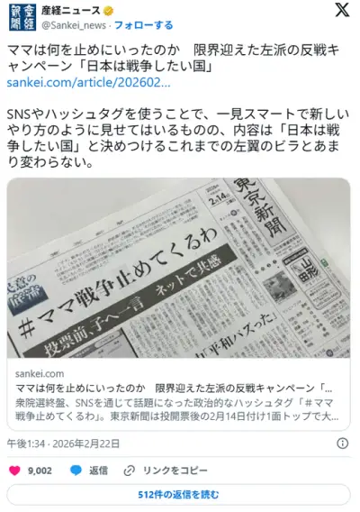 ママは何を止めにいったのか 限界迎えた左派の反戦キャンペーン「日本は戦争したい国」