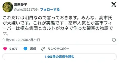 リベラル「これだけは明白なので言っておきます。みんな、高市氏が大嫌いです。これが実態です!」
