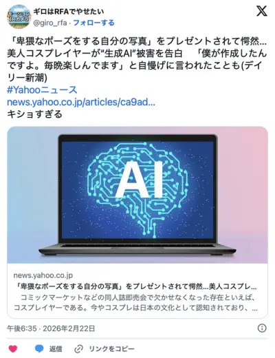 「卑猥なポーズをする自分の写真」をプレゼントされて愕然…コスプレイヤーが“生成AI”被害を告白