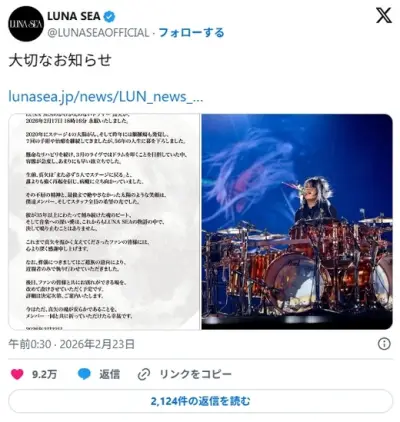 【訃報】LUNA SEAのドラマーの真矢さん死去 56歳