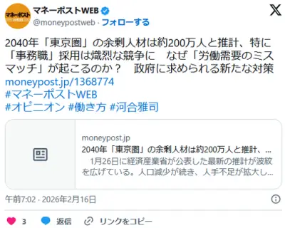 2040年東京圏で“余剰人材”200万人の推計、一方地方ではAI・現場人材とも不足…「労働需要のミスマッチ」地域間も、なぜ起こる