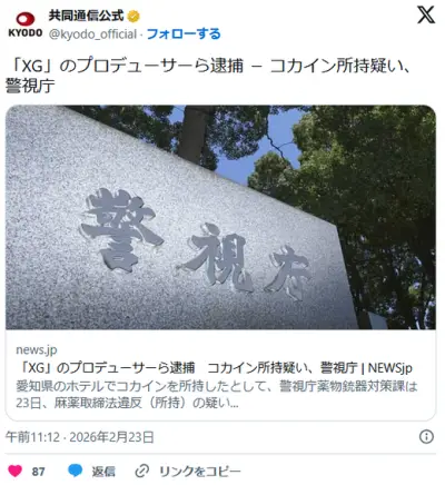 人気ガールズグループ「XG」のプロデューサSIMONこと酒井じゅんほ容疑者(39)ら4人 コカイン所持で現行犯逮捕