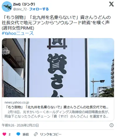 すかいらーくの資(し)さんうどん乗っ取り完了。社長交代。もう別物、資(し)さんじゃないの声