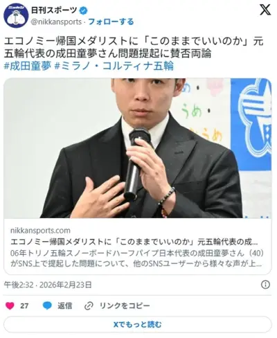 五輪メダリスト、クッソ遠いイタリアからエコノミークラスで帰国wwww元五輪選手「このままでいいのか」