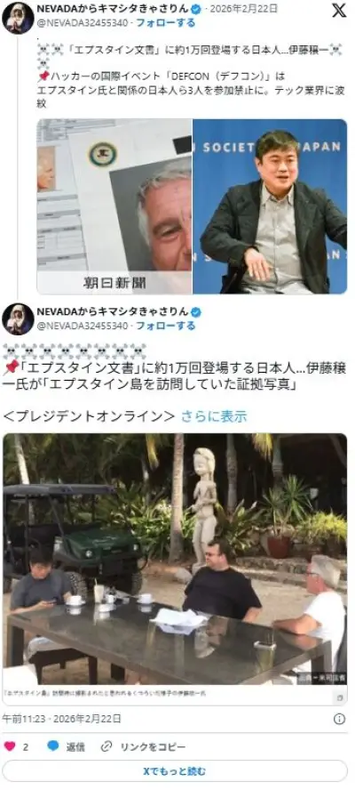 「エプスタイン文書」に約1万回登場する日本人…伊藤穣一氏が「エプスタイン島を訪問していた証拠写真」