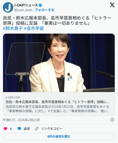 鈴木貴子「高市さんはヒトラー崇拝なんてしてない」→ヒトラー賛美本に推薦コメント書いてました