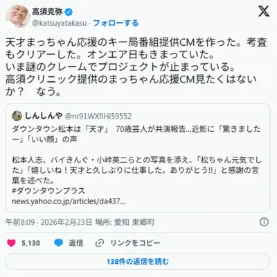 【闇深】松本人志出演のテレビCM、放送直前に謎のパワーにより放送中止wwwwwwww