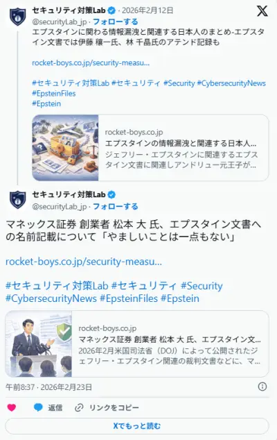 マネックス証券 創業者 松本大 氏、エプスタイン文書への名前記載について「やましいことは一点もない」