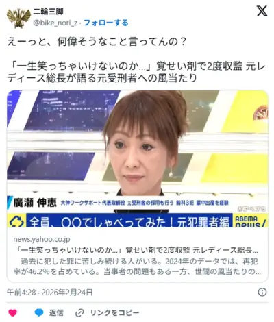 「アンチの書き込みがすごい。一生笑っちゃいけないのか…」 覚せい剤で2度収収監、元レディース総長が語る元受刑者への風当たり