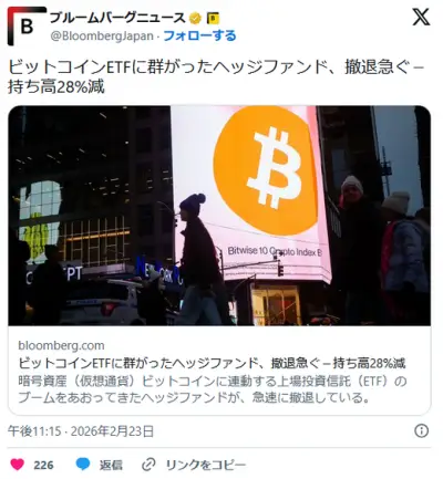 【仮想通貨】ビットコインETFに群がったヘッジファンド、撤退急ぐ-持ち高28%減