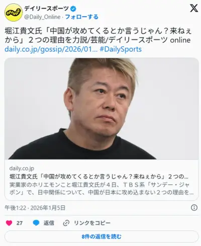 【正論】ホリエモン「中国が攻めてくるとか言うじゃん?来ねぇから!日本なんて眼中にない」