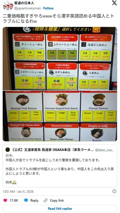 中国人お断りラーメン店『王道家直系我道家』 中国人に対するボッタクリがトラブルの元だったwwwwww