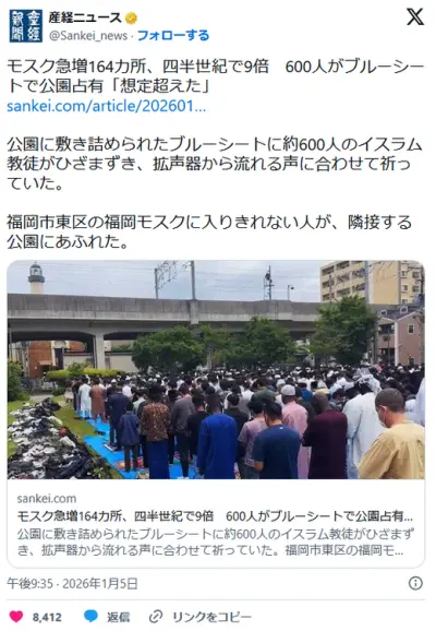 モスク急増164カ所、四半世紀で9倍 600人がブルーシートで公園占有「想定超えた」