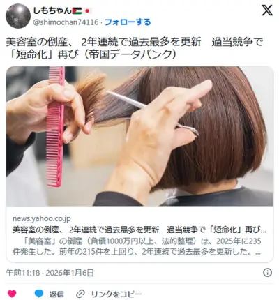 美容室の倒産、 2年連続で過去最多を更新