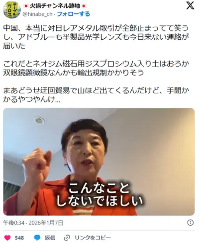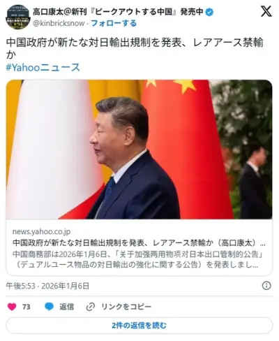 中国、対日レアアース禁輸へ。 高市が猶予期間に何も行動しなかったため