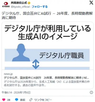 【デジタル庁】「国会答弁にAI試行」26年度、長時間勤務解消に期待