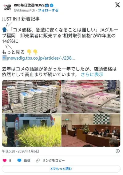JA「農家に値段の高くなったコメの値で支払っているので、すぐに安くは難しい」