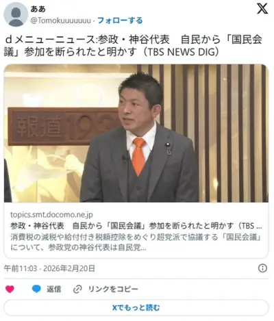 【国民会議】参政・神谷代表 自民から参加を断られたと明かす