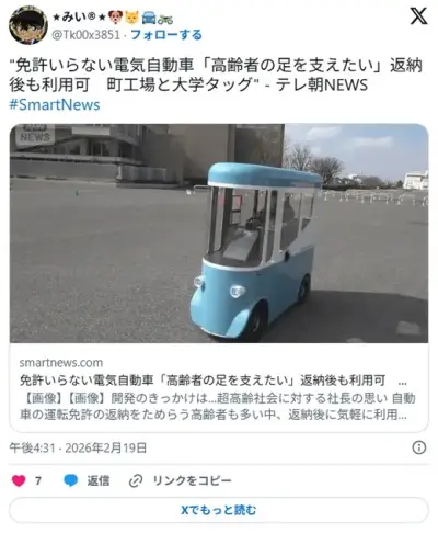 免許のいらない屋根付きシニアカー開発。時速は歩道6キロ、車道20キロ。これは怖い