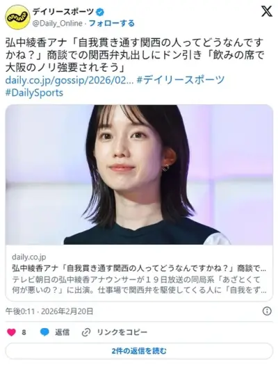弘中綾香アナ「自我貫き通す関西の人ってどうなんですかね?」商談での関西弁丸出しにドン引き