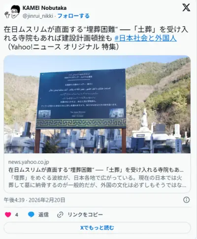 「この場所がいい…」日本でも埋葬おねしゃす!これからイスラム増えるんで!!