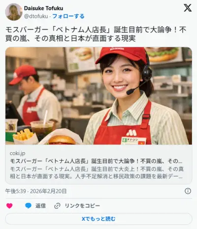【批判殺到】モスバーガー「ベトナム人店長」誕生目前で大論争!X上で不買の嵐