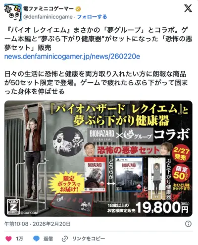 『バイオ レクイエム』まさかの「夢グループ」とコラボ ゲーム本編と“夢ぶら下がり健康器”がセットになった「恐怖の悪夢セット」販売