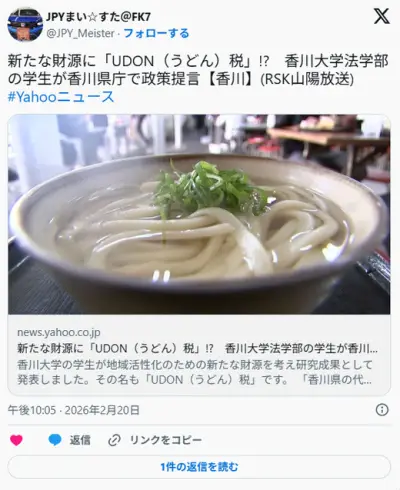 【香川】新たな財源に「UDON(うどん)税」 香川大学法学部の学生が香川県庁で政策提言