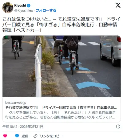 【自転車】それ道交法違反です!! ドライバー目線で見る「怖すぎる」自転車危険走行