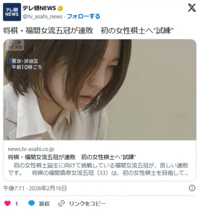 【将棋】 女性最強棋士 男性騎士にあっさり完敗する →フェミ「ぐぬぬ」