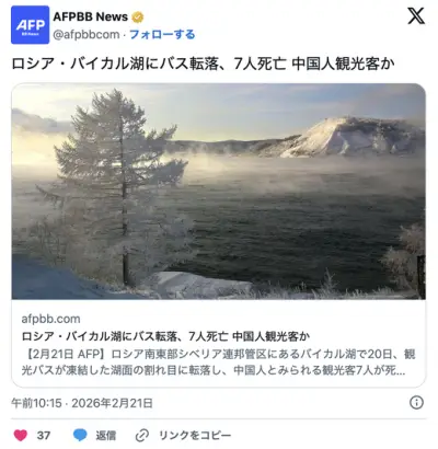 中国人観光客「バイカル湖の島に行くアル」氷の上を車で走り7人死亡