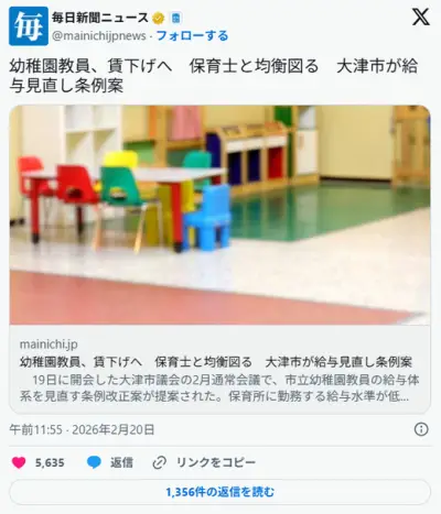 保育士「幼稚園とほぼ同じ仕事なのに給料安い」大津市「その問題解決しましょう」→