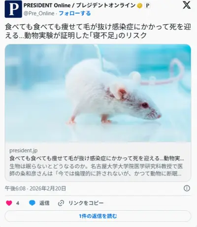 【本】食べても食べても痩せて毛が抜け感染症にかかって死を迎える…動物実験が証明した「寝不足」のリスク