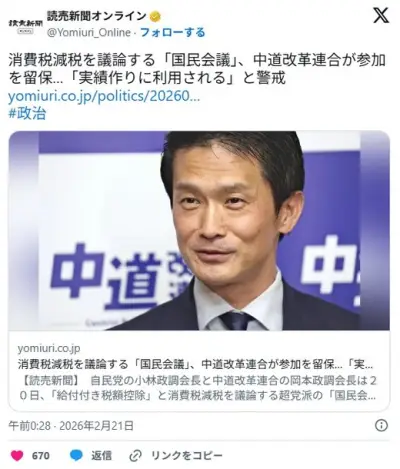 【悲報】中道改革連合、高市の実績になると悔しいので消費税減税参加せず