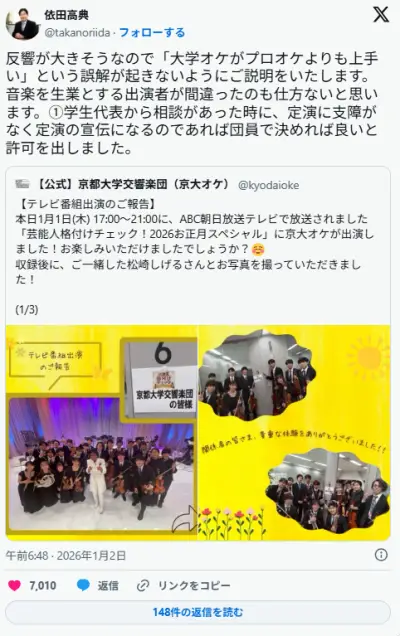 「格付け」不正解続出の京大交響楽団「プロオケより上手いという誤解がないよう」「大学オケがプロに適うはずがない」反響受け説明文
