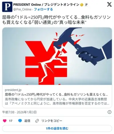 屈辱の「1ドル=250円」時代がやってくる…食料もガソリンも買えなくなる「弱い通貨」の真っ暗な未来