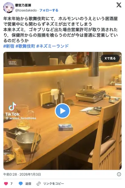 【動画】陰キャ「歌舞伎町でご飯食べてたら、ネズミいるんだけどwww」