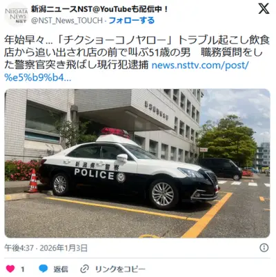【新潟】「チクショーコノヤロー」 飲食店から追い出された51歳男、店前で騒ぎ、駆け付けた警官に暴行 公務執行妨害で逮捕